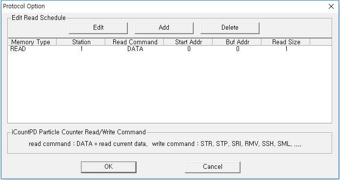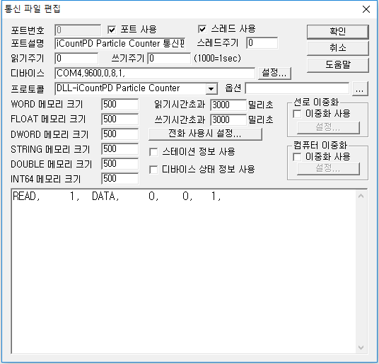 | <±×¸² 3> iCountPD Particle Counter µå¶óÀ̹öÀÇ Åë½Å Àб⠼³Á¤ Ãß°¡/ÆíÁý ´ëÈ»óÀÚÀÇ ¿¹ |