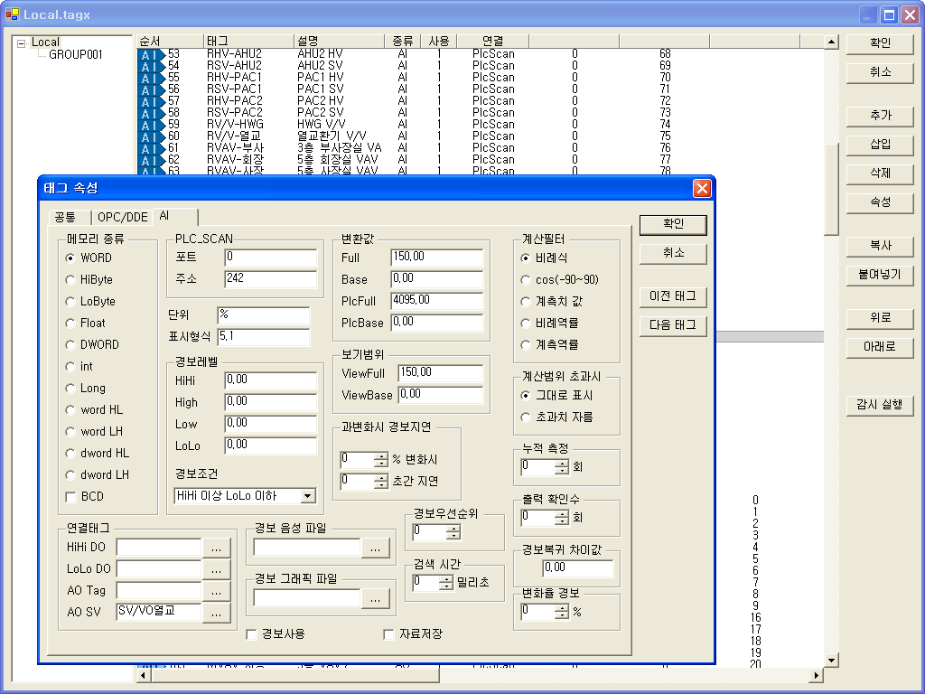 아날로그 입력/출력 태그 설정 변경