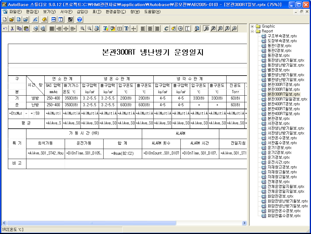 운전 데이타의 모든 부분을 리포터로 출력